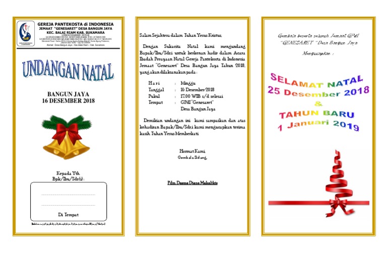 Gedung gereja nama gereja jalan nama jalan tema : Contoh undangan perayaan natal dihalaman pertama di isi dengan tulisan perayaan gereja, tema dan tujuan undangan. Salam damai sejahtera dalam nama yesus kristus, dengan penuh rasa syukur kepada yesus kristus yang telah lahir, kami panitia natal pemuda gkps helvetia resort medan barat mengundang bapak/ibu, saudara/i agar berkenan dapat menghadiri perayaan natal yang akan diselenggarakan pada : Besar harapan kami kiranya bapak/ibu saudara/i dapat menghadiri perayaan natal yang kami selenggarakan, atas kerjasama dan. Contoh surat undangan natal resmi acara natal memang merupakan acara keagamaan, namun tentu saja tidak ada salahnya.
